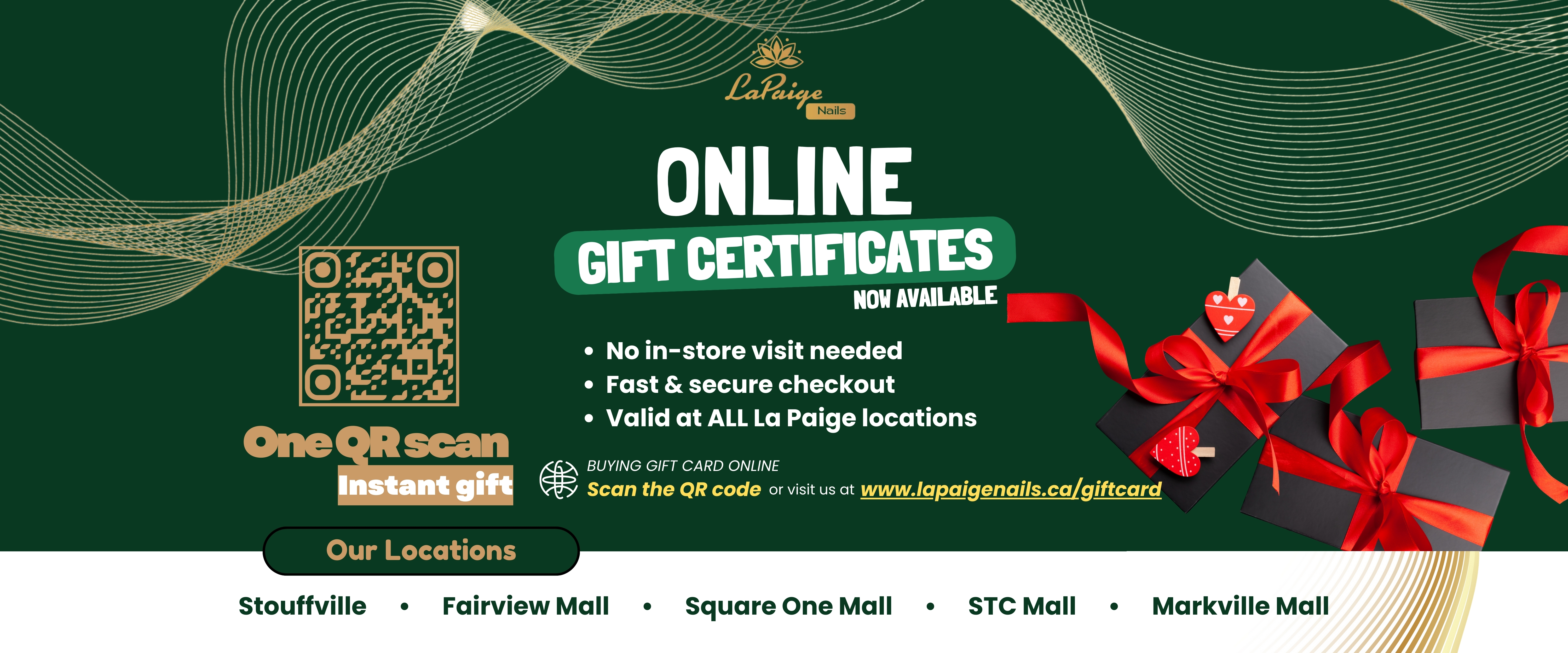 Visit us at: https://lapaigenails.ca/giftcard or Scan the QR code to buy our gift Certificates