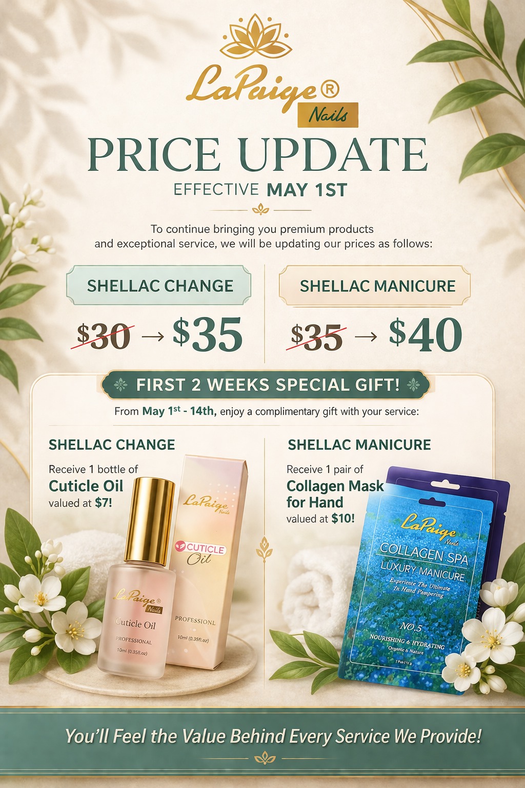 To continue bringing you premium products and exceptional services, we will be updating our prices as follows.